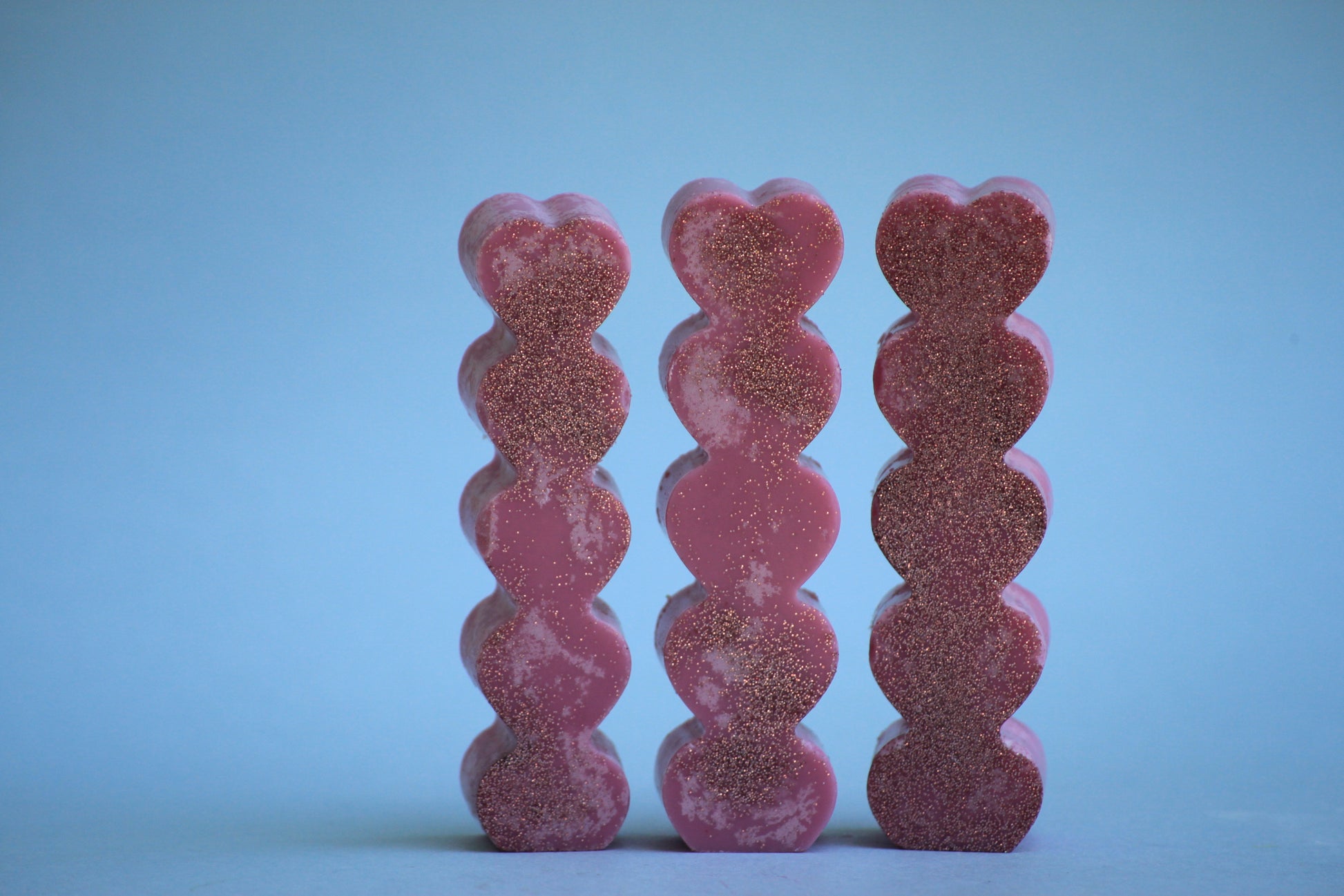 Candela Torre di Cuori realizzata a mano con cera di soia 100% naturale con stoppini in cotone naturale pre-cerato o senza.