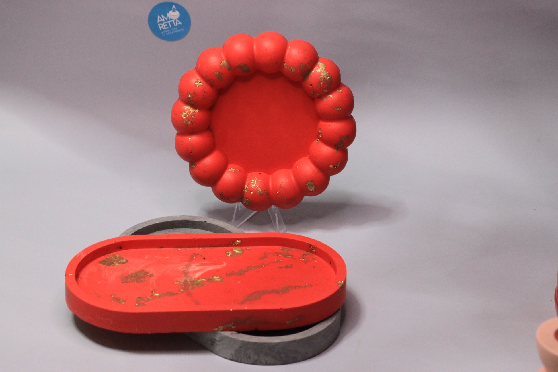 Vassoi in eco resina Jesmonite, vassoio per profumi, portacandele e porta tazze.